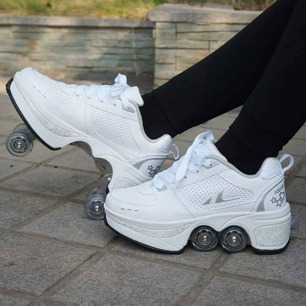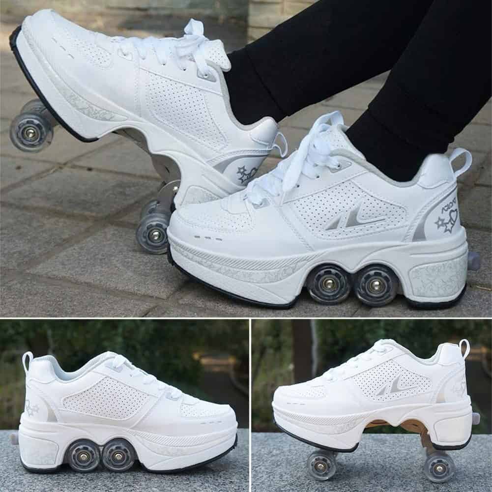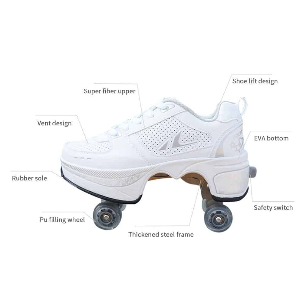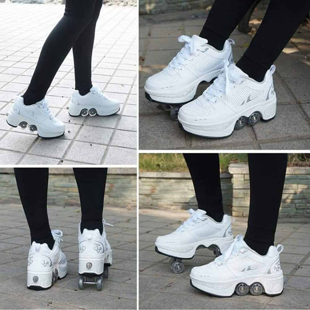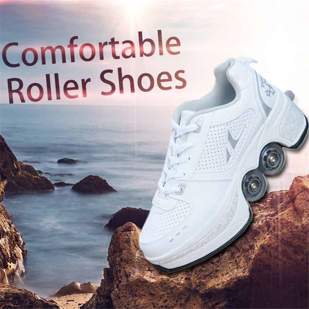 These Roller Skate Shoes are different from ordinary roller skates on the market. They can be used not only for skating, but also as ordinary sports shoes and walking shoes. The unique design invisible button prevents accidental opening. There is a button on the back of the shoe. Press the button to open the wheel. Press and hold the button, push the wheel into the floor, and then release. Multi-function adjustable roller skates are suitable for friends of all ages