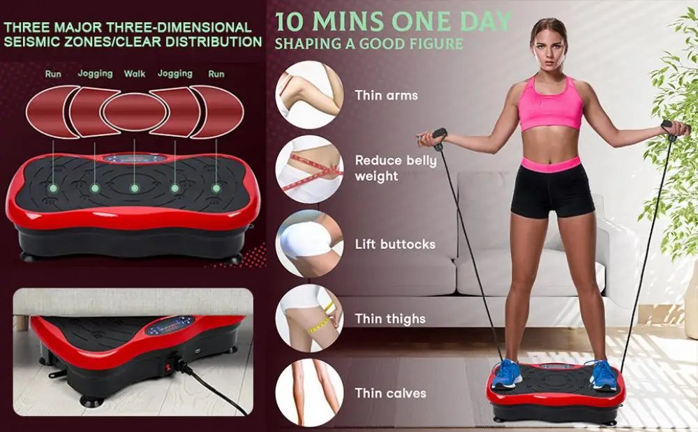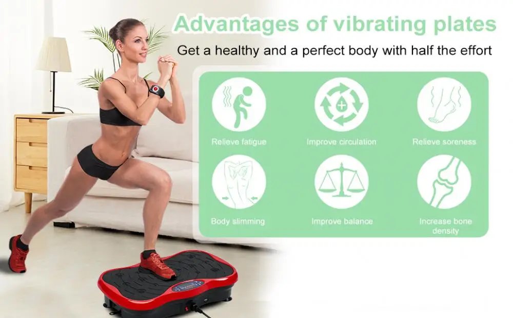 Build the Perfect Body: Stand on your vibration fitness machine and instantly build your ideal body! The vibration plate exercise machine generates whole-body vibrations for muscle contraction and activation to burn calories and fat, which can help your body process fat many times faster than running.